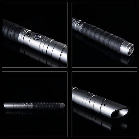 The RGB lightsaber is available in six different hilt colors: black, red, silver, gold, blue, and metal grey. The hilt is made from a frosted aluminum alloy, enhancing its durability, and making it suitable for actual dueling rather than keeping it just as a collector’s item.